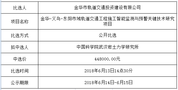 金華市金義東軌道交通有限公司運(yùn)營(yíng)2025年安全質(zhì)量活動(dòng)項(xiàng)目的中標(biāo)候選人公示