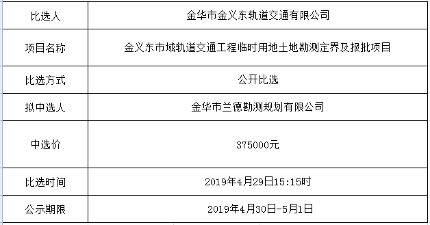 金華市金義東軌道交通有限公司運(yùn)營(yíng)2025年安全質(zhì)量活動(dòng)項(xiàng)目的中標(biāo)候選人公示