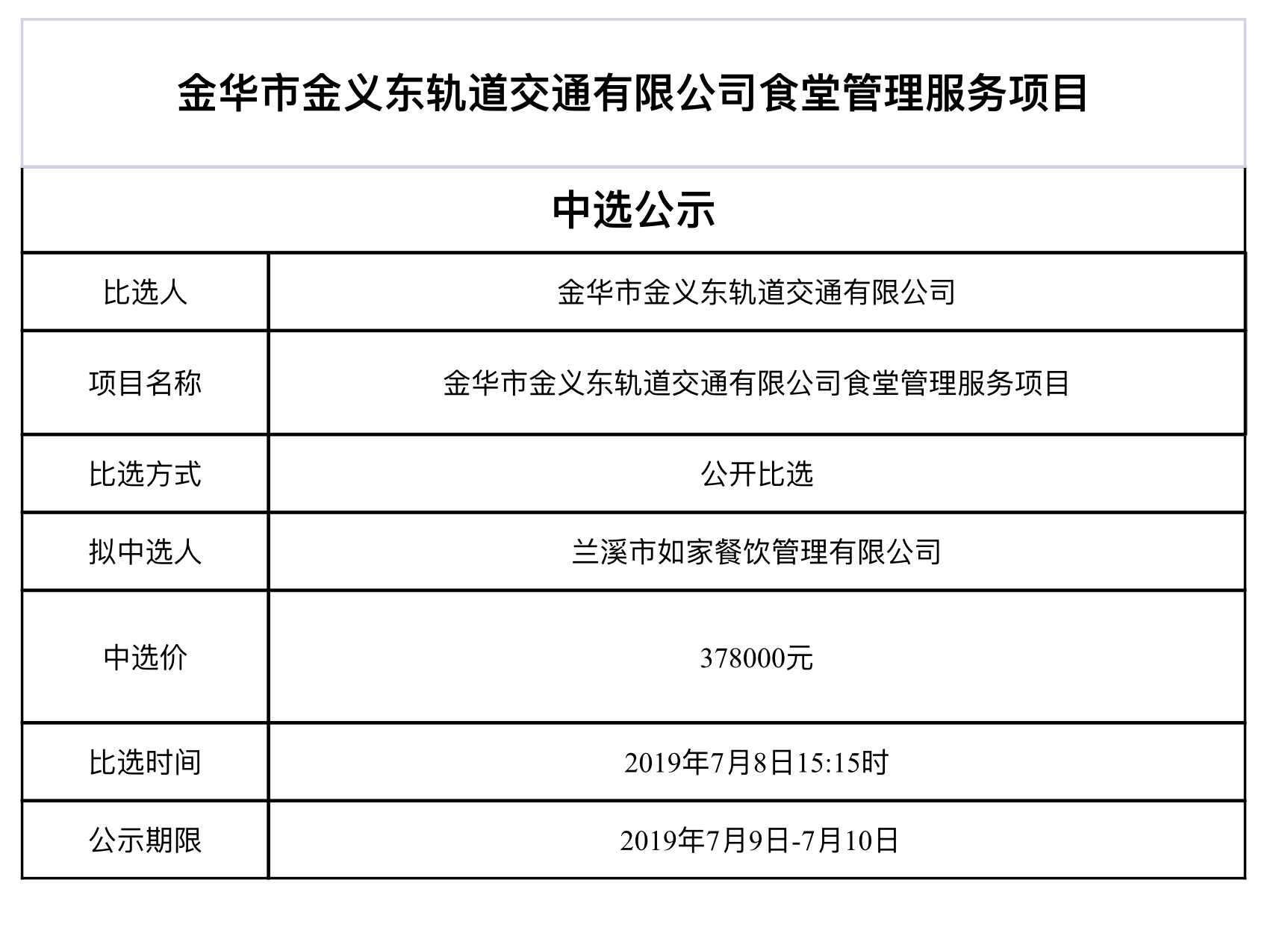金華市金義東軌道交通有限公司運(yùn)營(yíng)2025年安全質(zhì)量活動(dòng)項(xiàng)目的中標(biāo)候選人公示