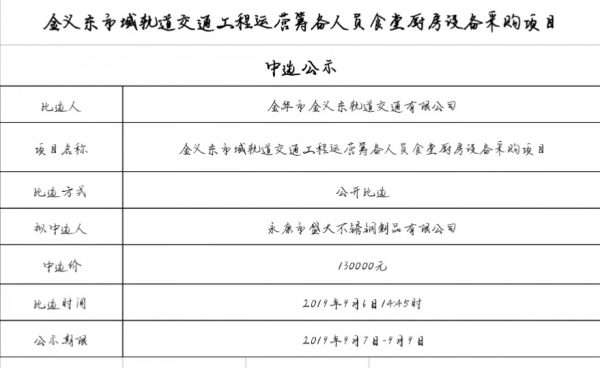 金華市金義東軌道交通有限公司運(yùn)營(yíng)2025年安全質(zhì)量活動(dòng)項(xiàng)目的中標(biāo)候選人公示