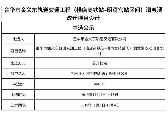 金華市金義東軌道交通有限公司運營2025年安全質(zhì)量活動項目的中標(biāo)候選人公示