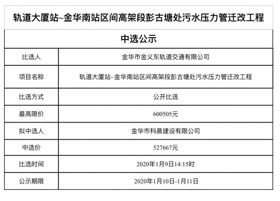 金華市金義東軌道交通有限公司運(yùn)營2025年安全質(zhì)量活動項目的中標(biāo)候選人公示