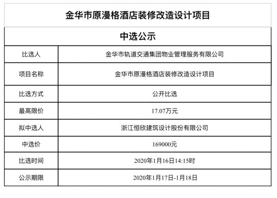 金華市金義東軌道交通有限公司運(yùn)營(yíng)2025年安全質(zhì)量活動(dòng)項(xiàng)目的中標(biāo)候選人公示