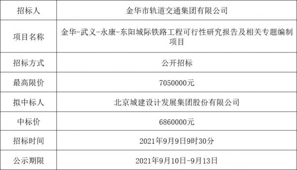 金華-武義-永康-東陽城際鐵路工程可行性研究報告及相關專題編制項目中標公示